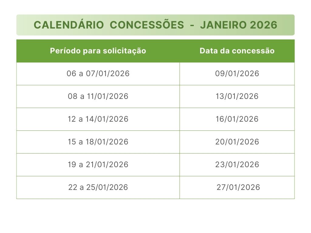 A Néos informa que as concessões de empréstimos já estão disponíveis. O calendário para realizar as solicitações poderá ser consultado abaixo: