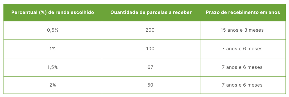 Nessa opção, você pode escolher a duração do recebimento do benefício, entre 15 e 25 anos.